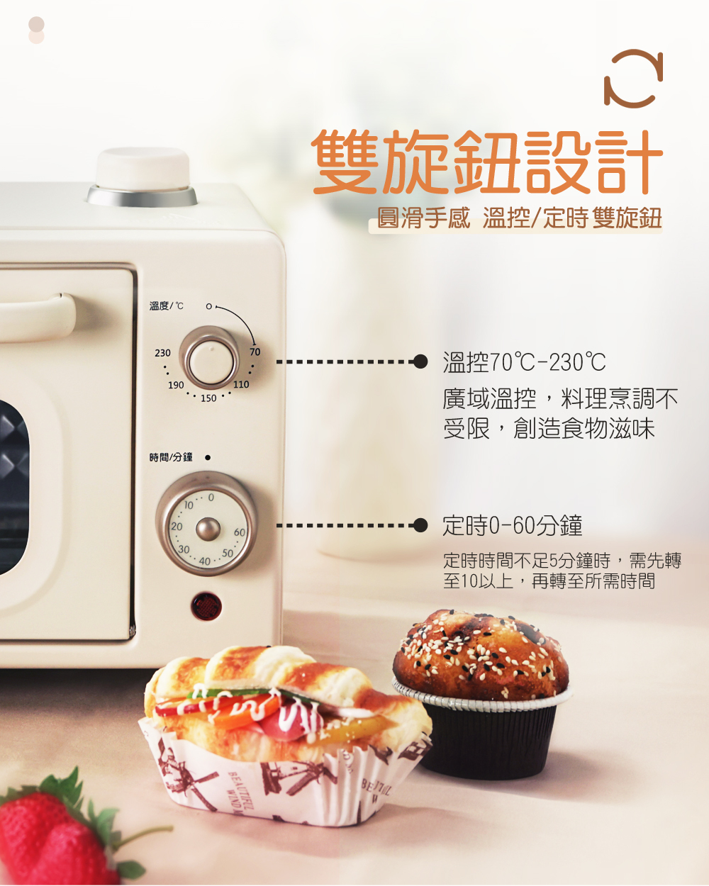 溫控/定時 雙旋鈕設計